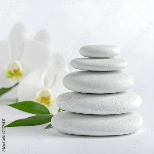 © Abdui, Fototapeta premium Stacked white stones with orchids