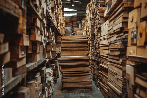 Obraz premium Stacked Wood Boards in a Lumber Warehouse