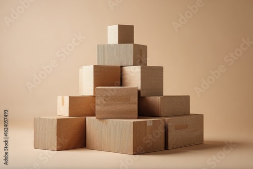 Fototapeta premium Stacked wooden boxes with natural grain texture