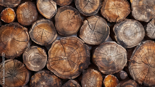 © Imane, Naklejka premium stacked wooden logs background, rustic and natural wood texture