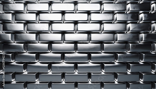 © Morihashi, Naklejka premium stacking silver bars brick wall close up brickwall texture background. 3d render