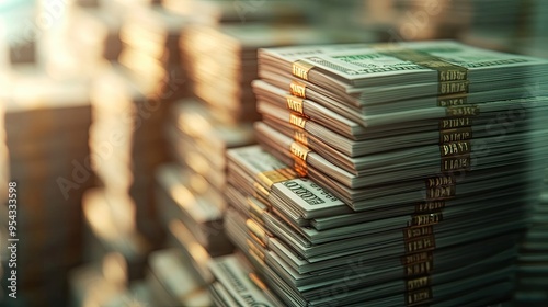 © Ariestia, Obraz premium Stacks of US Dollar Bills in a Room Full of Money