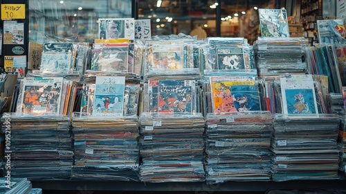 Fototapeta premium Stacks of Vintage Comics Graphic Novels at Outdoor Bookstore