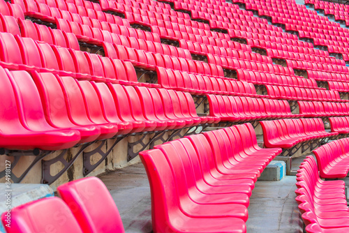 © theyok, Obraz premium stadium, red seats on stadium steps bleacher