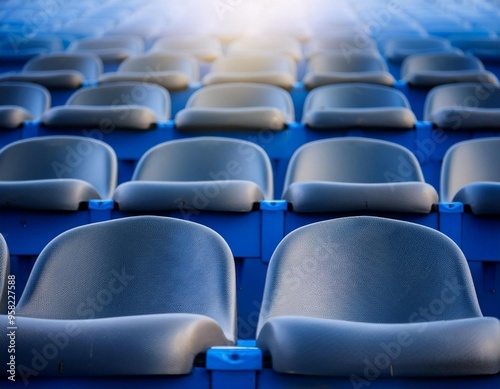 Naklejka premium Stadium seats, capturing sports venue, seating arrangement, and event...