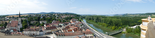 © Helmut, Obraz premium Stadt Melk Landschaft und Fluss als Panorama