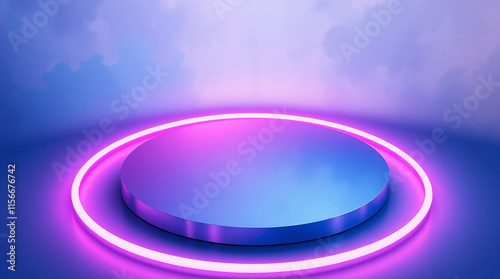 Fototapeta premium stage 3d podium presentation display showcase Blue neon product background