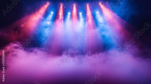 Fototapeta premium Stage lights shine, with purple haze and fog adding ambiance