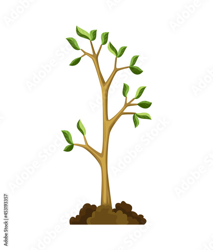 Obraz premium Stage of tree growth. Small tree growth with green leaf and branches. Nature plant illustration