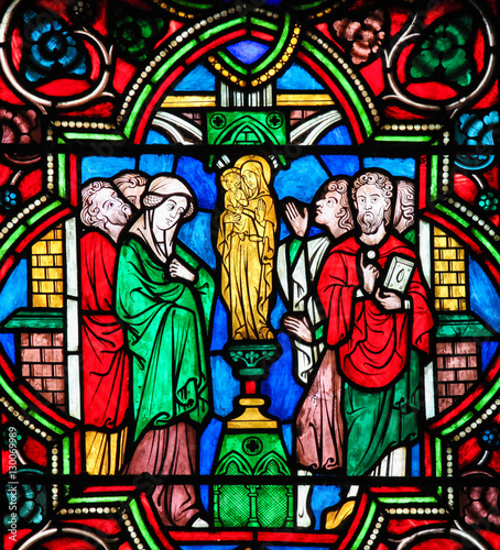 © jorisvo, Obraz premium Stained Glass - Adoration of the Blessed Virgin Mary