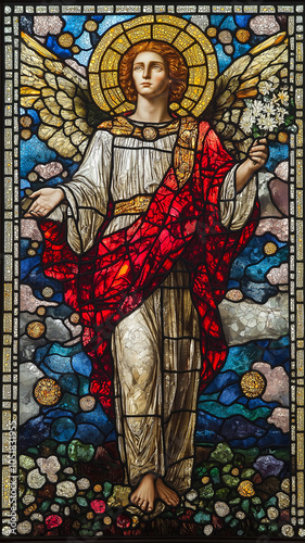 © Sacha, Obraz premium Stained Glass Angel with Flowers