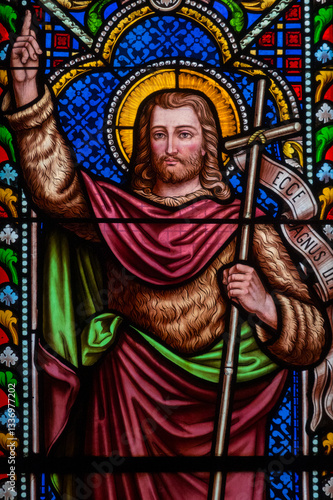 Naklejka premium Stained glass (19th century) of Saint John the Baptist.