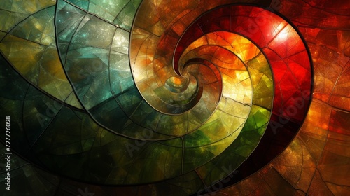 Fototapeta premium Stained glass window background with colorful apple abstract.