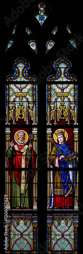 © Mikhail Blajenov, Naklejka premium Stained-glass window in the old cathedral