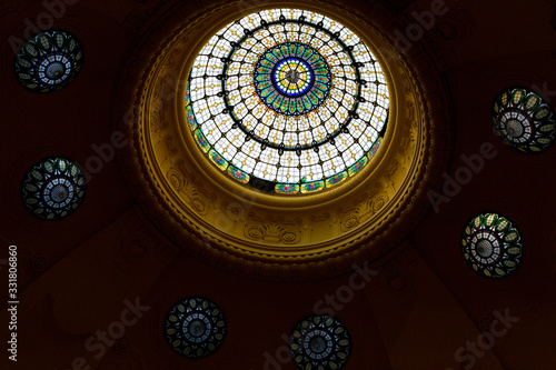 © Hennadii, Obraz premium Stained glass window on the ceiling in an old building