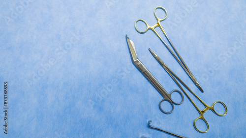 © Mr.Boyz, Fototapeta premium Stainless forceps medical scissors. Medical instruments. Medical Surgical Instrument. Equipment used in surgery.