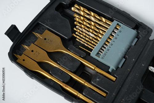 © Bogac, Fototapeta premium Stainless steel drill bits on a white isolated background