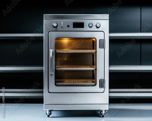 Obraz premium Stainless steel minimalist incubator with an intuitive interface, used for precision fermentation in a highend restaurant