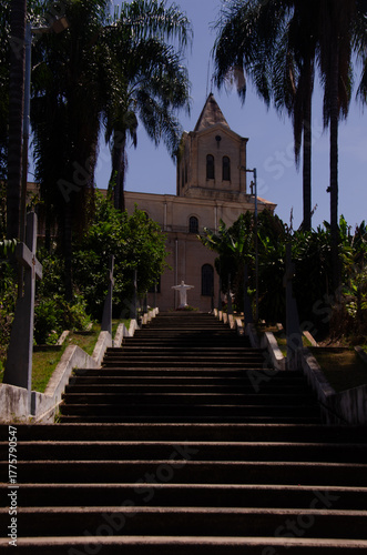 © Hannytta, Naklejka premium staircase in the santa olimpia neighborhood, in piracicaba, with the Maria Estrela da evangelização Parish in the background