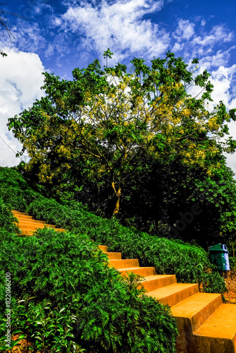 Naklejka premium Staircase leading to park by Umiam Lake, Meghalaya, India