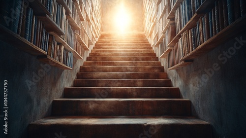 Fototapeta premium Staircase of Books Leading Upwards in a Creative Indoor Setting