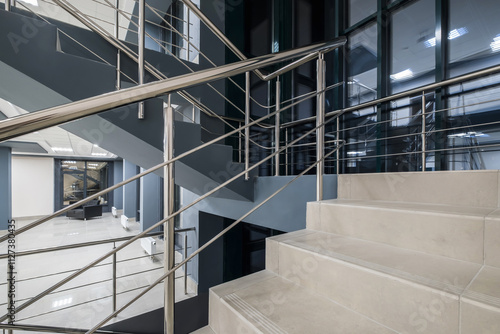 Fototapeta premium stairs emergency and evacuation exit stair in up ladder in a new office...