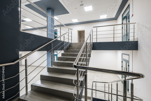 Fototapeta premium stairs emergency and evacuation exit stair in up ladder in a new office...