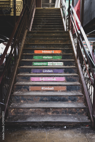 © Kevin, Obraz premium stairs leading to elevated train tracks in chicago