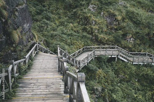 Obraz premium Stairs on top of Wugong Mountain in Jiangxi, China