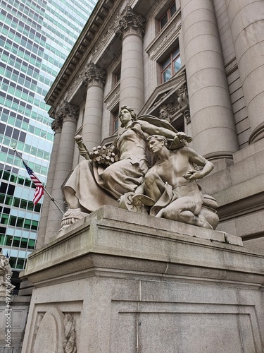 Obraz premium Stairway marble statue at the Smithsonian National American Indian Museum....
