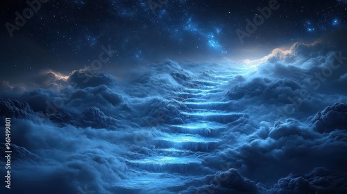 Fototapeta premium Stairway to Eternity: Ethereal Steps Ascending Through Misty Celestial Realms
