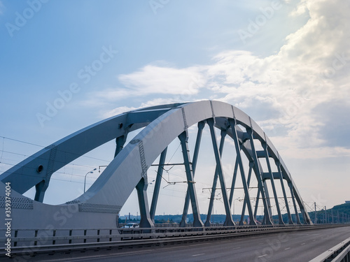 © An-T, Obraz premium Stalowy łuk połączonego mostu drogowo-kolejowego