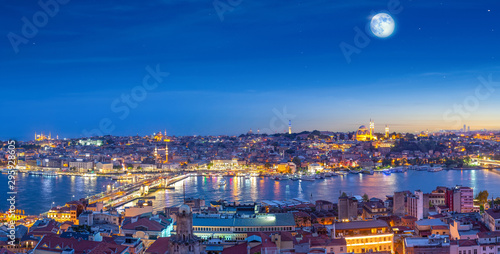 © stoimilov, Fototapeta premium Stambuł i Bosfor w nocy, Panorama, Turcja.
