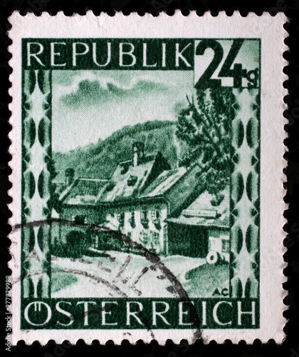 © zatletic, Obraz premium Stamp printed by Austria, shows Hoel - Mill, Lower Austria, circa 1945.