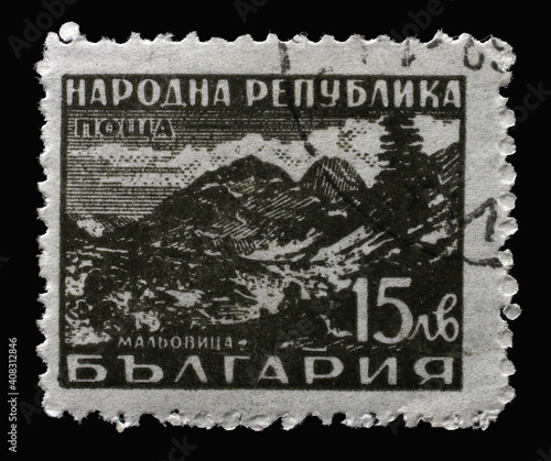 © zatletic, Obraz premium Stamp printed in Bulgaria shows Maljowitza, Rila Mountain, Baths series, circa 1949