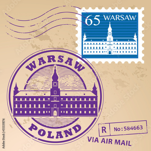 © Flavijus Piliponis, Obraz premium Stamp set with words Warsaw, Poland inside, vector