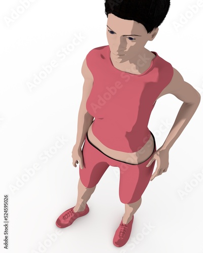 © JEGAS RA, Fototapeta premium Standing afro american woman. Sport girl. Casual sportwear. Top view. Young woman wearing workout clothes. Sport fashion girl outline in urban casual style. 3D render