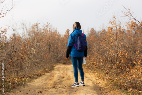 © qunica.com, Fototapeta premium Standing alone and smiling while preparing for her training in the forest