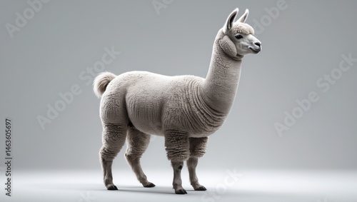 © NeuralNiche, Fototapeta premium Standing alpaca in side profile with medium silver grey color isolated on white