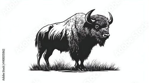 © Utpal, Naklejka premium Standing buffalo in bold line vector style images