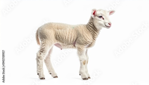 © Pure Imagination, Fototapeta premium Standing Cream White Lamb Profile View on Plain White Background Studio Shot