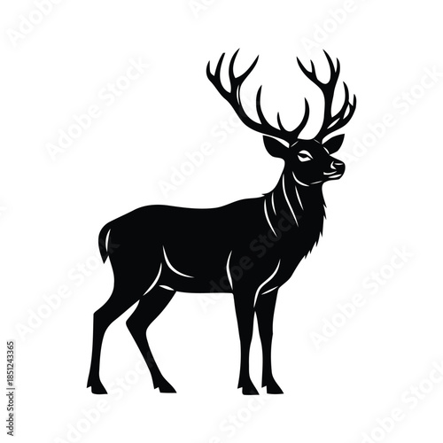 © Shanta Akter Ahk, Fototapeta premium Standing Deer Black Silhouette Vector Illustration