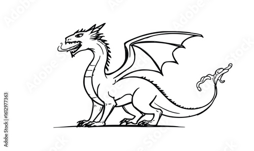 Fototapeta premium Standing Dragon Vector Outline – Fierce Side View Mythical Creature with...