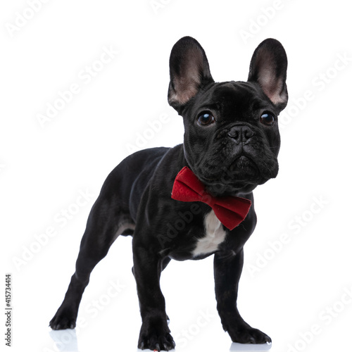 Fototapeta premium standing elegant french bulldog puppy looking up