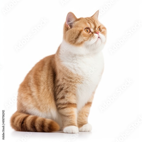 Obraz premium Standing Exotic Shorthair Cat. Isolated on Caucasian, White Background. Generative AI.
