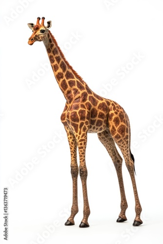 © El Media, Naklejka premium Standing Giraffe Isolated on White Background with Natural Looking Spots