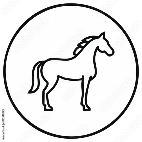 Obraz premium Standing horse outline icon inside a round border. Simple black and white...