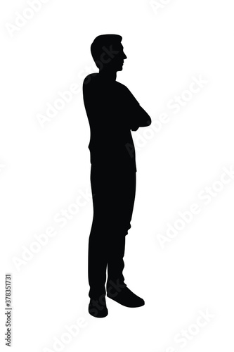Obraz premium Standing man silhouette vector on white background, simple people concept..