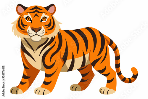 © Design Crea, Naklejka premium Standing Orange and Black Striped Tiger with a Curled Tail