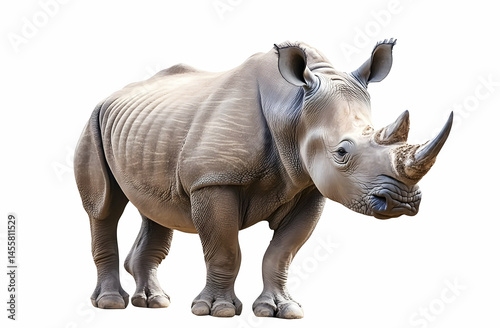 © Deny, Fototapeta premium Standing Rhino Isolated on White Background Wildlife Animal